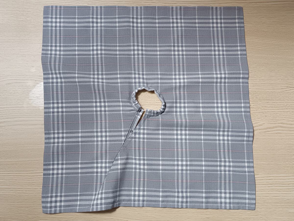 正方形パターンのスカートです。グレー系にピンクが入ったチェック柄です。